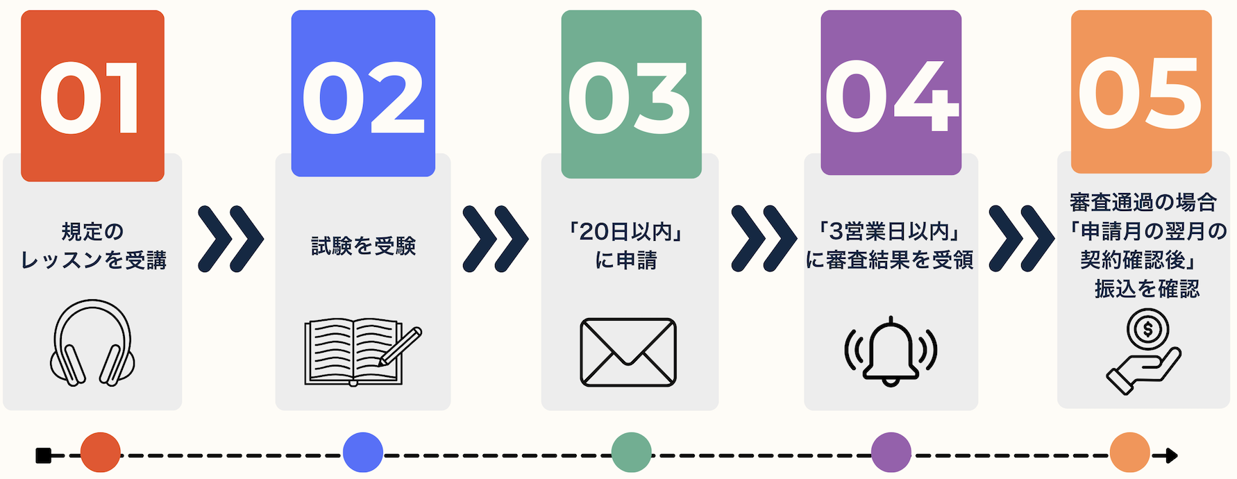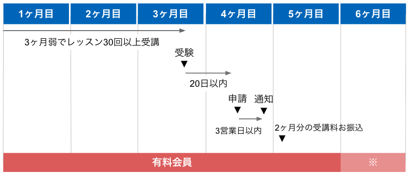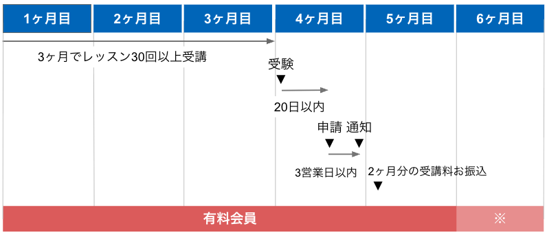 【3ヶ月目に受験、4ヶ月目に申請】 ※保証期間:4~5ヶ月目