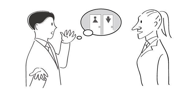 The restroom is located over there. Go straight the corridor, turn right at the end, and you will find the restroom at your left side. Do you understand? If you are a smoker, the designated smoking place is located outside on the 2nd floor. Smoking is prohibited inside the restaurant.