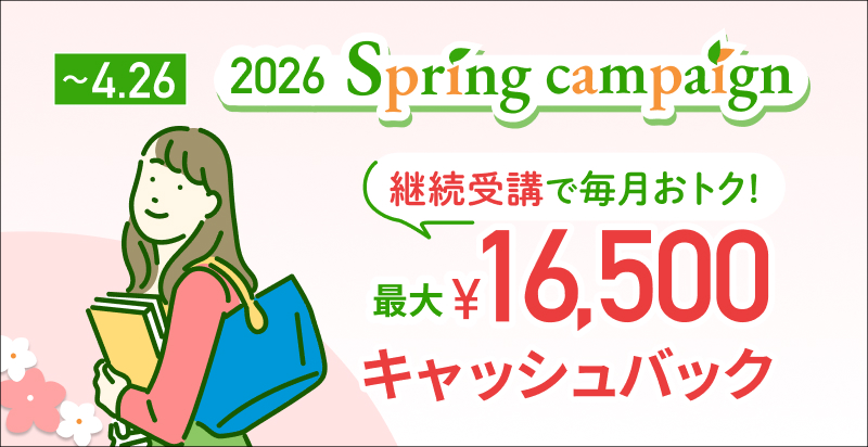 キャンペーン期間中にキャンペーンに参加し、新規で有料会員登録をいただいた方全員に『月額受講料から5,500円キャッシュバッククーポン』をプレゼントいたします。