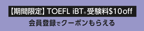 TOEFL iBT®受験料$10 off クーポン配布中
